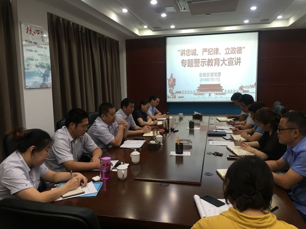 本次宣講以《“講忠誠、嚴紀律、立政德”,做“忠誠、干凈、擔當”的黨員干部》為主題,圍繞魯煒案、徽商集團窩案反面教材,省委巡視組對部分省屬企業在巡視發現的問題,集團公司黨委大宣講、大督查發現的問題,安裝公司目前存在的問題,對照“六聚焦六整肅”深入查擺存在的問題,要求黨員干部要保持絕對忠誠,嚴守紀律規矩,樹立良好政德,將從嚴管黨治黨落到實處。還通過對集團公司、公司優秀共產黨員、優秀黨務工作者先進模范事例的宣貫,要求黨員干部要在履職盡責上樹標桿、敢于擔當上作表率,做“忠誠、干凈、擔當”的黨員干部。