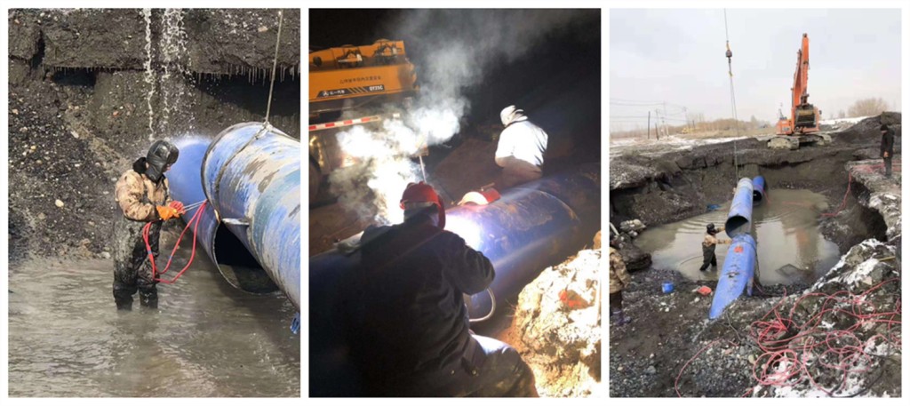 該工程是在野外長距離作業,管道沿途需要穿過高速、省道、鐵路、亞歐光纜及眾多鄉村道路和田間陰溝,施工區域內有農田、戈壁、沙漠,沼澤等,自然環境極其惡劣,施工地質極為復雜。尤其在步入11月,新疆烏蘇市正式進入寒冬季節,期間平均氣溫都在零下十度以下,并時常飛舞著雪花,由于晝夜溫差大,夜間項目上的氣溫更是達到零下二三十度,這給項目部施工帶來了嚴重挑戰,但項目部員工沒有被惡劣的環境所嚇倒,他們“逢山開路、遇水搭橋”,努力克服各方面不利因素,合理安排施工進度計劃。全體職工發揚安徽建工人“特別能吃苦,特別能戰斗”的企業作風,在公司“大干60天”勞動競賽的正向激勵下,不畏環境艱苦,抓質量,保安全,戰荒漠,斗嚴寒,每天堅持戰斗在生產第一線,哪里有施工,哪里就有管理人員的堅定身影。