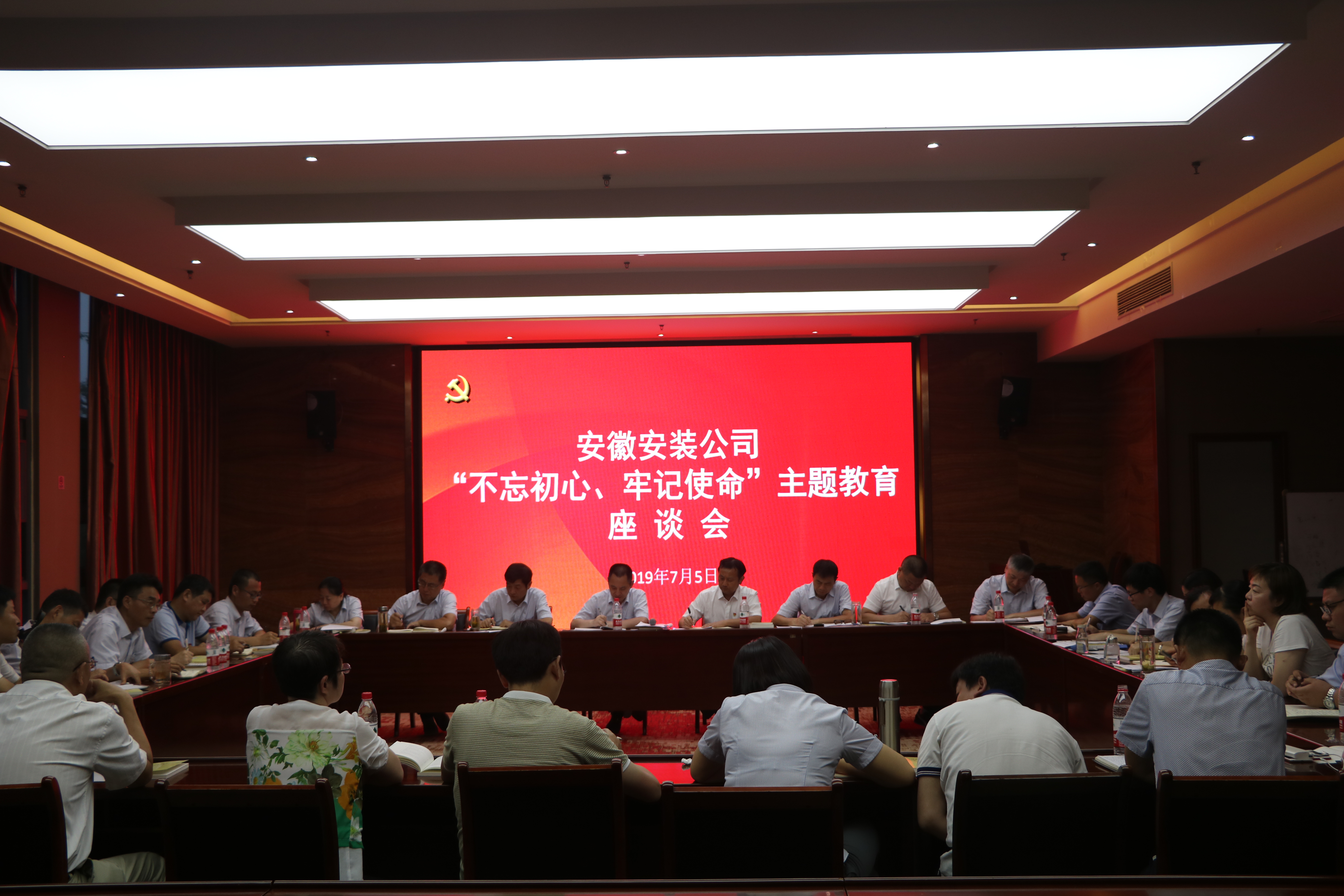 7月5日,安徽安裝公司召開“不忘初心、牢記使命”主題教育座談會,公司領導班子成員出席會議,機關部門負責人、所屬單位黨政負責人參會。