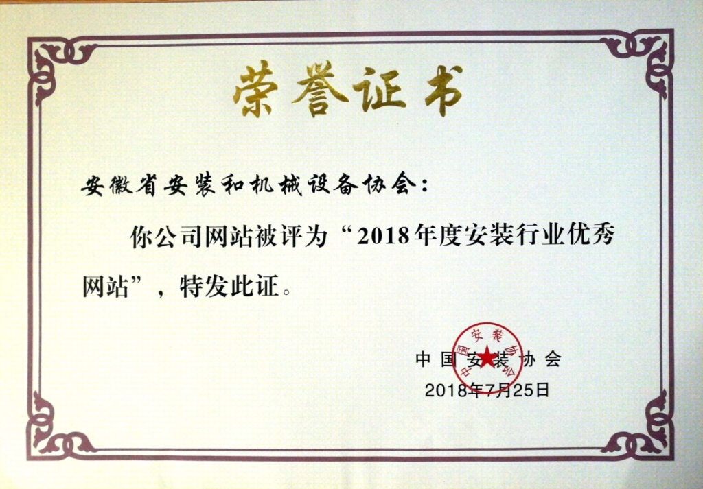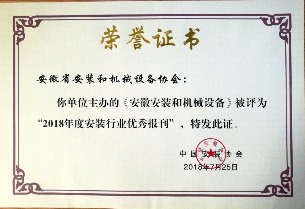 安徽省安裝和機械設備協會榮獲2018年度“安裝行業優秀報刊”和“安裝行業優秀網站”稱號