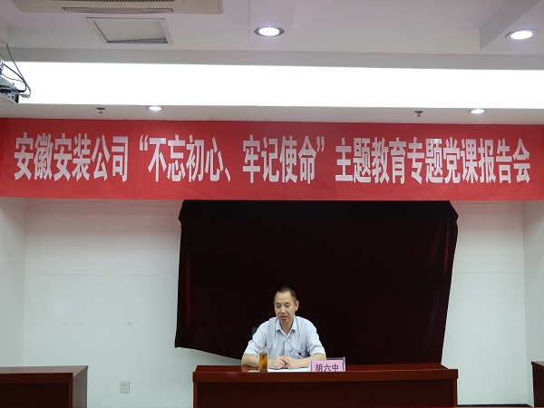 根據(jù)安徽安裝公司黨委“不忘初心、牢記使命”主題教育工作部署安排,8月8日下午,安徽安裝公司召開“不忘初心、牢記使命”主題教育專題黨課報(bào)告會(huì),集團(tuán)主題教育第一指導(dǎo)組應(yīng)邀出席報(bào)告會(huì)。