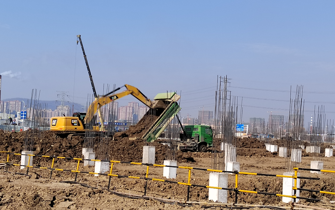 現場隨處可見的挖掘機、裝載車、吊車的轟鳴聲與工人師傅們緊張忙碌的工作場景交織在一起,勾勒出一派繁忙、壯觀、熱火朝天的節日大干火熱場景。