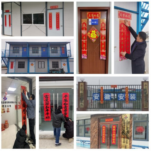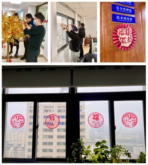 金牛送舊千家樂,玉虎迎新萬戶歡,春節(jié)將至,為豐富職工文化生活,營造歡樂、祥和、平安、喜慶、和諧的節(jié)日氣氛,合肥分公司工會(huì)提前準(zhǔn)備了喜慶的新年裝飾、對聯(lián)、窗花等節(jié)慶用品,組織團(tuán)員青年、機(jī)關(guān)員工將辦公室裝扮一新,并將濃濃年味帶到了各個(gè)項(xiàng)目部現(xiàn)場。