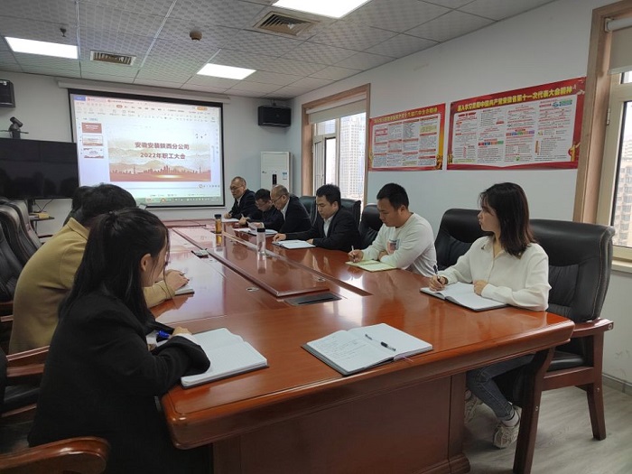 3月18日上午,陜西分公司組織召開2022年度職工大會,分公司領導班子成員、機關全體人員共同參會,會議由分公司黨支部書記江輝主持。