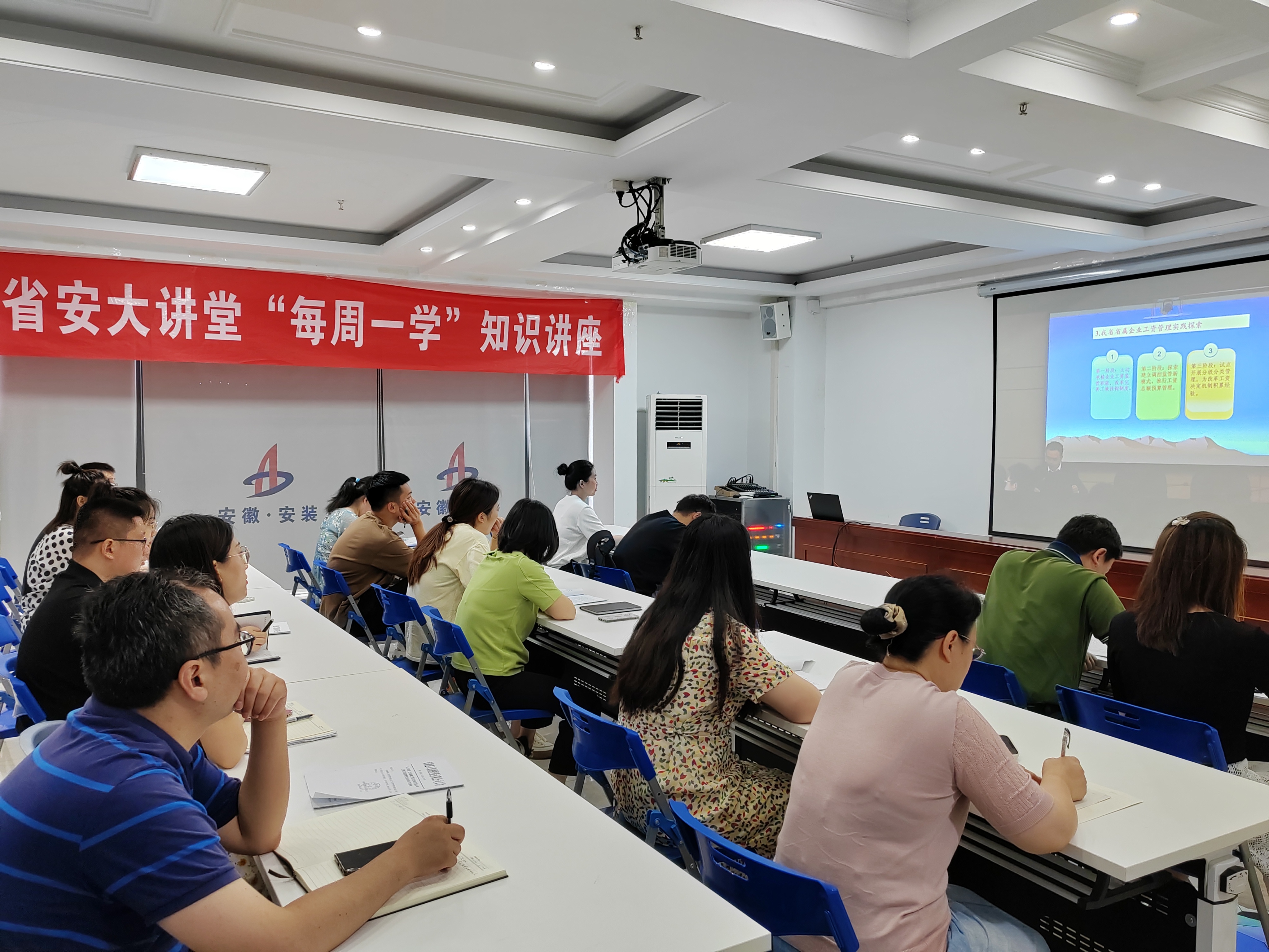 為提升公司工資總額管控水平,6月24日上午,安徽安裝公司對(duì)人力資源管理人員及財(cái)務(wù)管理人員進(jìn)行了專題視頻學(xué)習(xí)培訓(xùn)。公司財(cái)務(wù)管理人員、人力資源管理人員共計(jì)40余人參加培訓(xùn),培訓(xùn)以現(xiàn)場(chǎng)加視頻形式召開(kāi)。
