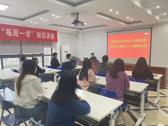 安徽安裝合肥分公司團支部組織團員青年召開會議,傳達(dá)學(xué)習(xí)黨的二十大精神,圍繞如何發(fā)揮共青團組織的政治功能、做好黨的理論“青年化”闡釋開展熱烈討論。