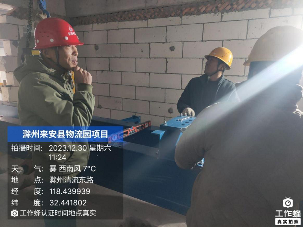 來安縣農(nóng)副產(chǎn)品冷鏈物流產(chǎn)業(yè)園電梯安裝工程現(xiàn)場,項目經(jīng)理帶班對電梯機房進行進度、質(zhì)量、安全檢查,確保電梯安裝符合工程建設標準。