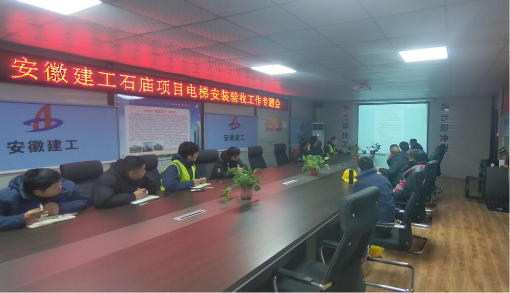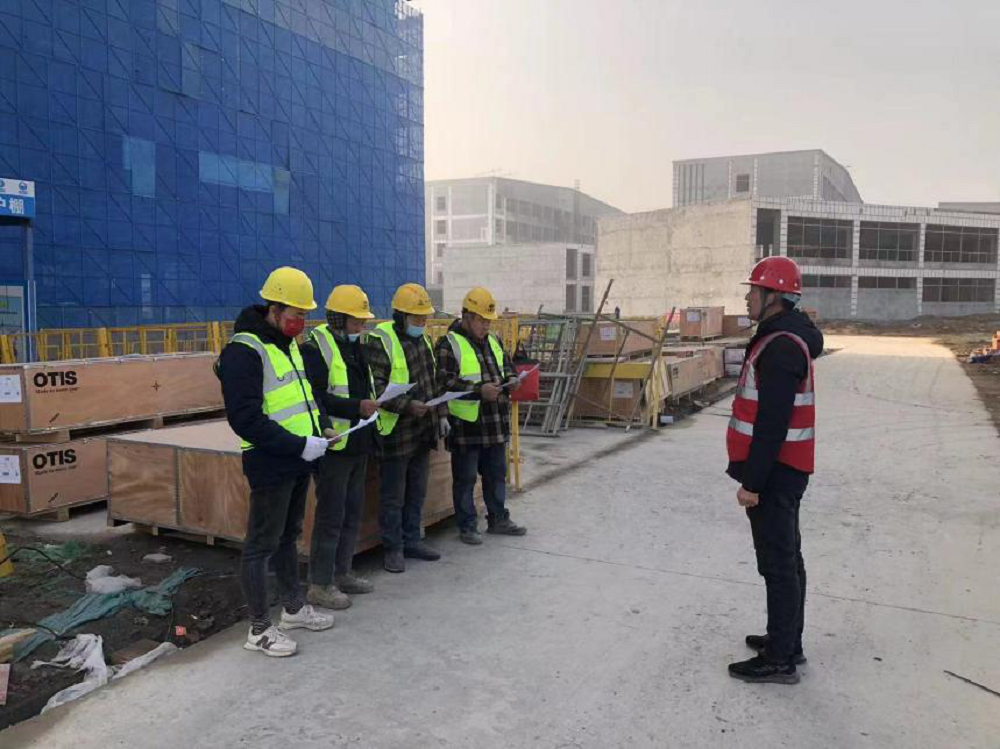 渦陽職教園電梯安裝工程現(xiàn)場,項目部對施工班組人員開展三級安全教育、技術交底,強化安全防范意識,確保項目施工生產(chǎn)安全。