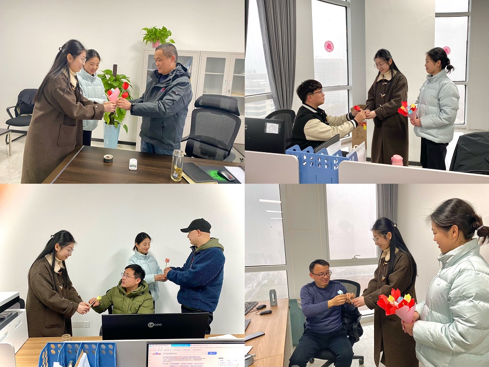 隨后,女職工們拿著自己親手折疊出來的心意,送給分公司每一位職工手中,希望分公司全體職工如同這一朵朵郁金香一樣幸福、健康、美麗,同時也寓意著新能源分公司這個美滿的大家庭永遠綻放著和諧、歡樂、絢麗、向上的精神。