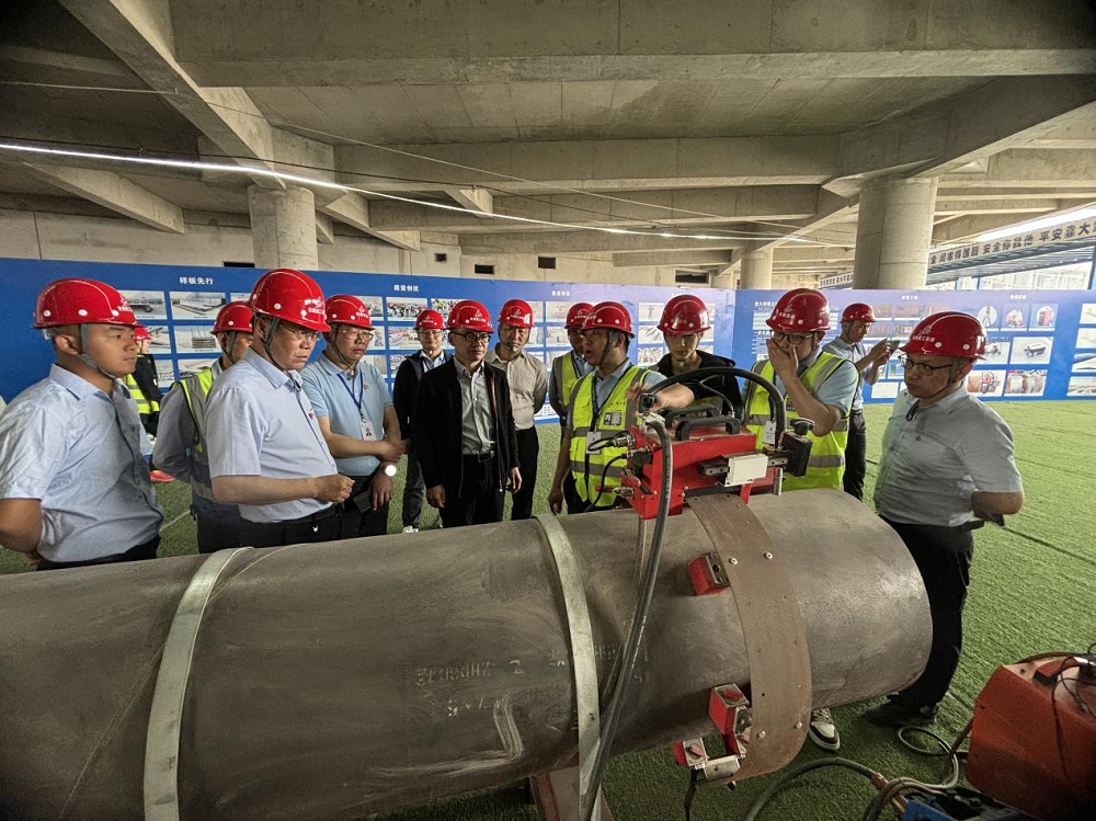 隨后一行人前往項(xiàng)目施工現(xiàn)場(chǎng)觀摩,雙方對(duì)現(xiàn)場(chǎng)的協(xié)調(diào)管理、BIM管綜布局、多工種交叉作業(yè)等提出了各自的經(jīng)驗(yàn)和見(jiàn)解,王永利一行特別對(duì)項(xiàng)目上采用的焊接機(jī)器人技術(shù)表示了贊賞。