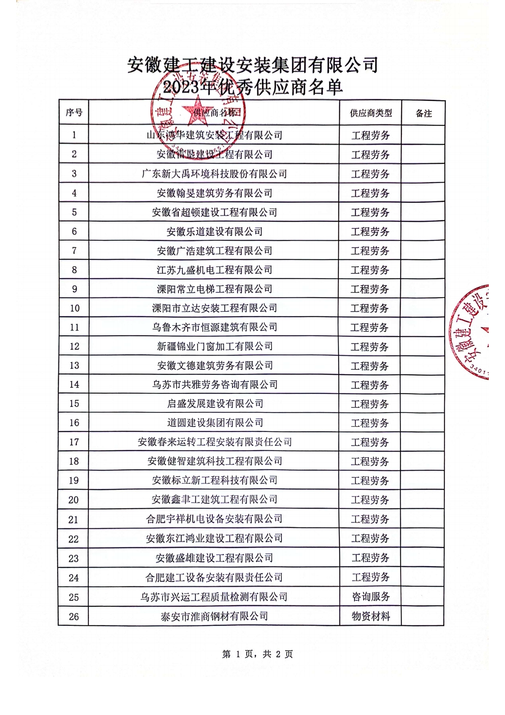 關于公布2023年度公司優秀供應商的通知