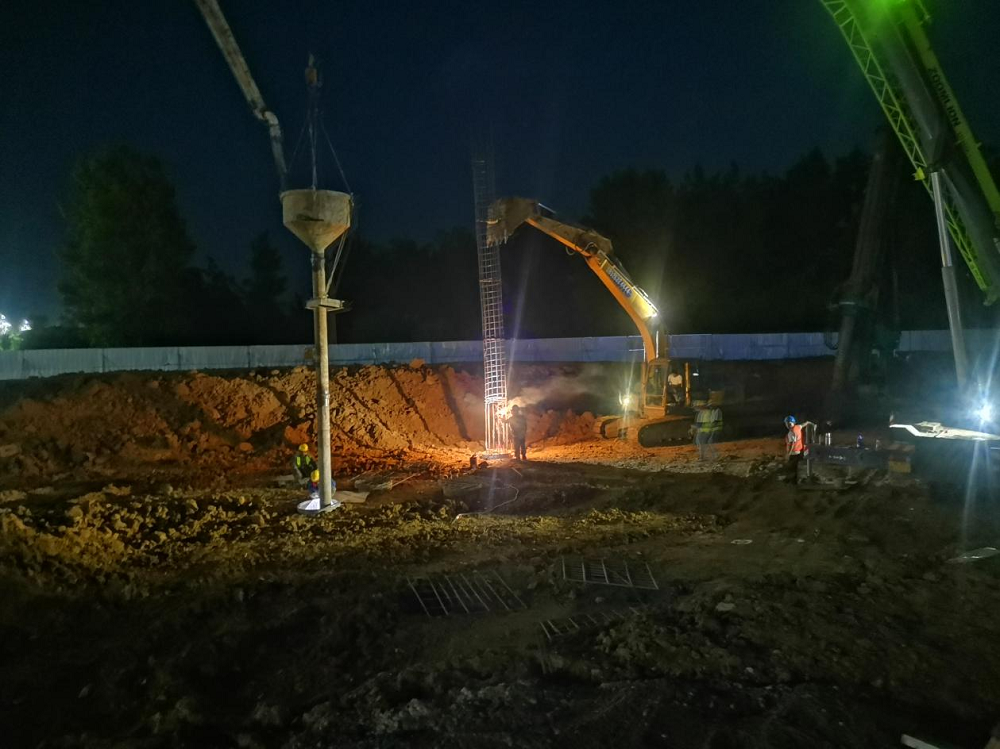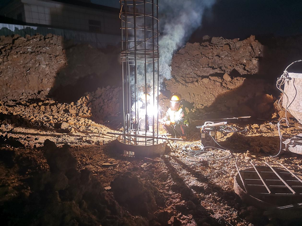 時間緊、任務重,為了全速推進施工進度,項目部堅持每天召開“碰頭會”,解決當天施工現場各種問題,不斷優化施工組織方案,保障資源配置,把任務分解到天、具體到點,明確責任人,采取增大工作面、增加施工班組人員和機械等有效措施加快施工進度,加班加點施工,進入連續作戰狀態,奏響了“白+黑”不停歇的沖刺戰歌。目前,在項目部的連續奮戰和努力下,六鋼大廈酒店基礎部位旋挖灌注樁澆筑已完成,11-7軸/a-d軸開挖完成。正處于樁基承臺施工階段。