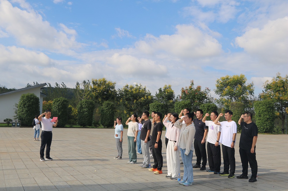 鏡園革命烈士紀念碑在陽光的照耀下莊嚴肅穆,黨員們懷著崇敬的心情,整齊列隊于紀念碑前,表達對先烈們的深切緬懷和無限哀思。在這片承載著歷史記憶的土地上,大家仿佛看到了革命先烈們為了國家的獨立、民族的解放,不惜拋頭顱、灑熱血,用生命譜寫的壯麗篇章。全體黨員進行了集體宣誓,重溫入黨誓詞。
