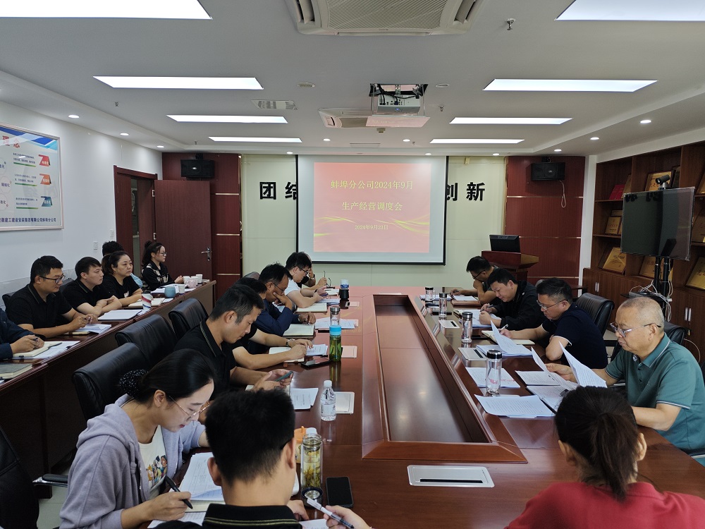 9月23日上午,蚌埠分公司組織召開9月份生產經營調度會,分公司領導班子成員、所屬各項目部、機關各部門負責人及工程管理部全體員工參加會議,會議由分公司副經理張斌主持。