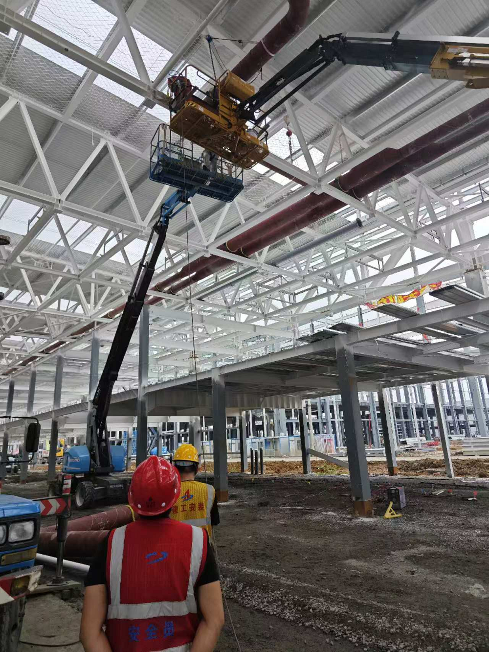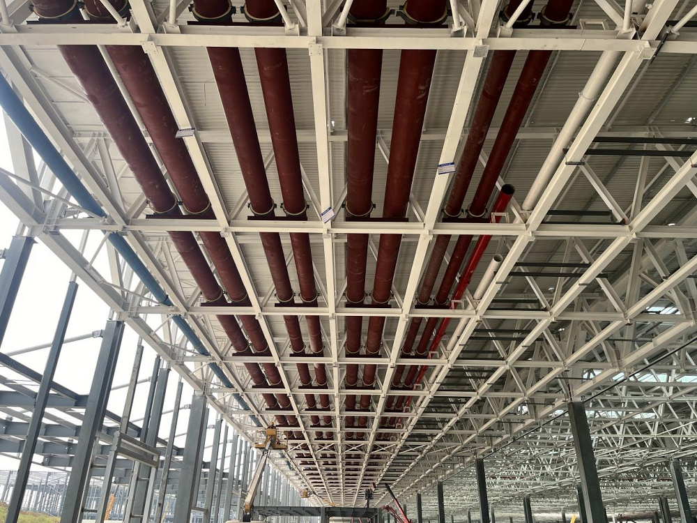 “優方案”,項目部根據現場實際情況提前優化吊裝施工方案,加快冷凍水管道安裝速度;并根據現場吊裝孔洞,轉變思路,定制8米螺旋焊管,大大加快了吊裝施工進度。