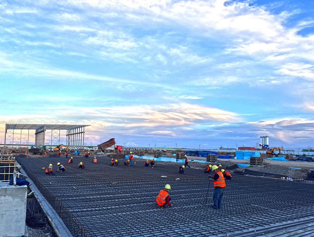 走進青海鹽湖項目施工現場,建設者們堅守施工一線,正有條不紊地忙碌著,進行鋼筋綁扎、模板安裝、混凝土澆筑、鋼結構安裝……連日來,項目開啟“白加黑”工作模式,白天機械轟鳴,晚上挑燈夜戰,全體參建人員鉚足干勁、齊心協力,為工程項目快速推進保駕護航。