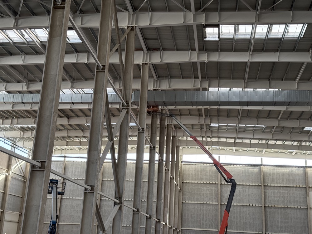 本周,焊裝車間已完成全部實物工程量,循環水、空調水、消防水、生活給水、冷凝水、虹吸雨水等全面進入系統試壓階段。同步配合完成了總包單位焊接機器人進場的細節工作。目前,車間一QA樓與沖壓車間正在進行安裝工作,能源中心同步施工,冷卻塔、板式換熱器已有序進場安裝。
