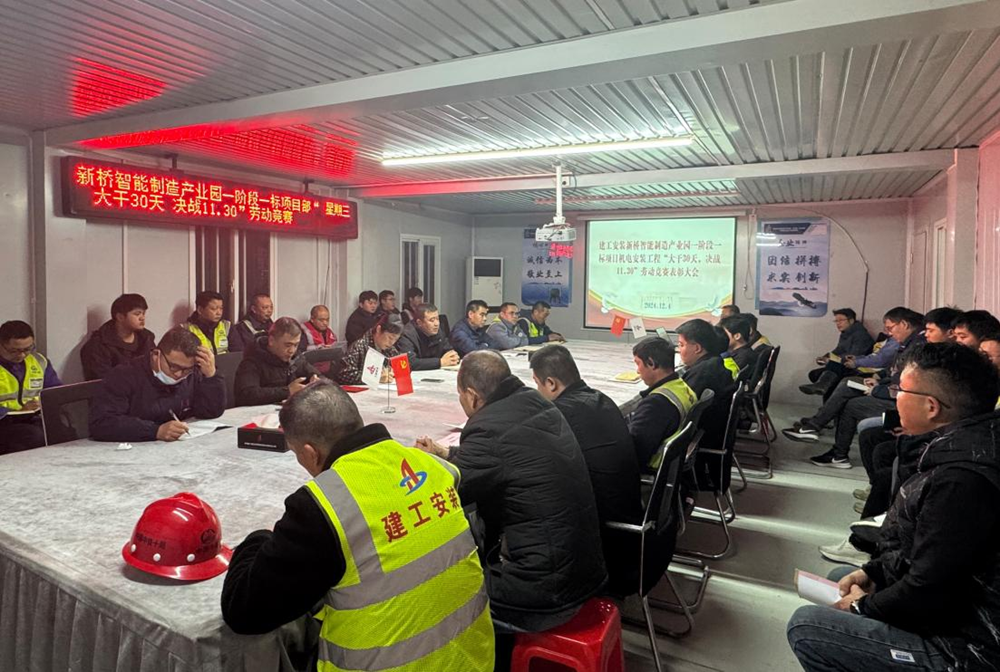 建工安裝滁州分公司合肥新橋智能制造 產業園一階段一標機電安裝項目部召開 “大干30天 決戰11.30”勞動競賽 總結表彰大會