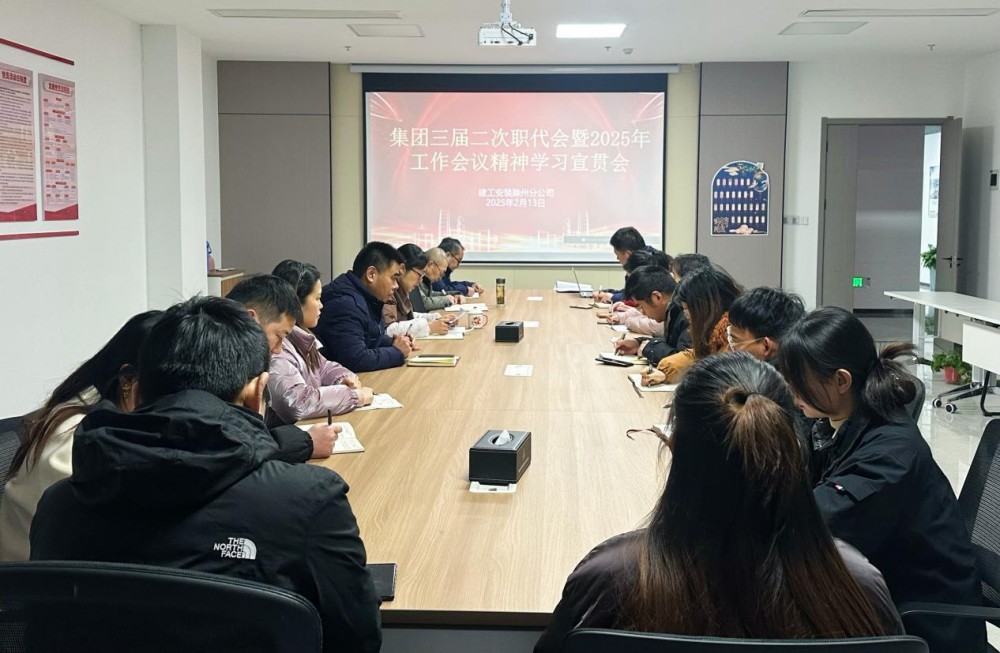 2月13日上午,建工安裝滁州分公司分別在機(jī)關(guān)和項(xiàng)目部組織召開(kāi)專題會(huì)議傳達(dá)學(xué)習(xí)建工控股三屆二次職代會(huì)暨2025年工作會(huì)議精神,分公司領(lǐng)導(dǎo)班子成員、機(jī)關(guān)全體員工和新橋智能制造產(chǎn)業(yè)園項(xiàng)目員工參加會(huì)議。