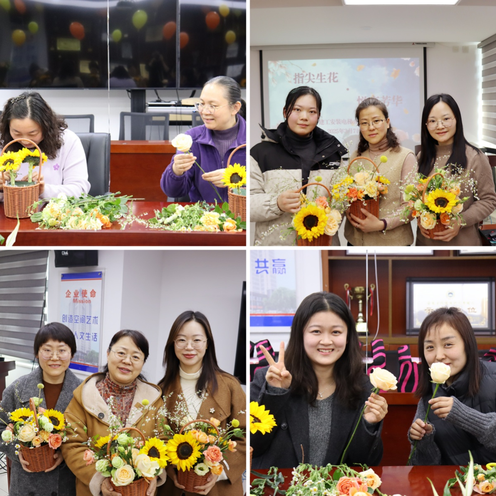 活動現場花香四溢,充滿著春天的氣息,專業花藝師從花材特性、色彩美學到造型構思向大家進行了系統講解并進行了現場演示。女職工們興致盎然、躍躍欲試,充分發揮自己的想象力,以高漲的熱情投入到插花創作中,紛紛化身“春日設計師”,將玫瑰的熱烈、百合的芬芳、向日葵的陽光巧妙組合,在修剪與構思中展現女性的細膩匠心。大家一邊插花創作,一邊互相交流著自己的想法和創意,現場充滿了歡聲笑語、其樂融融。