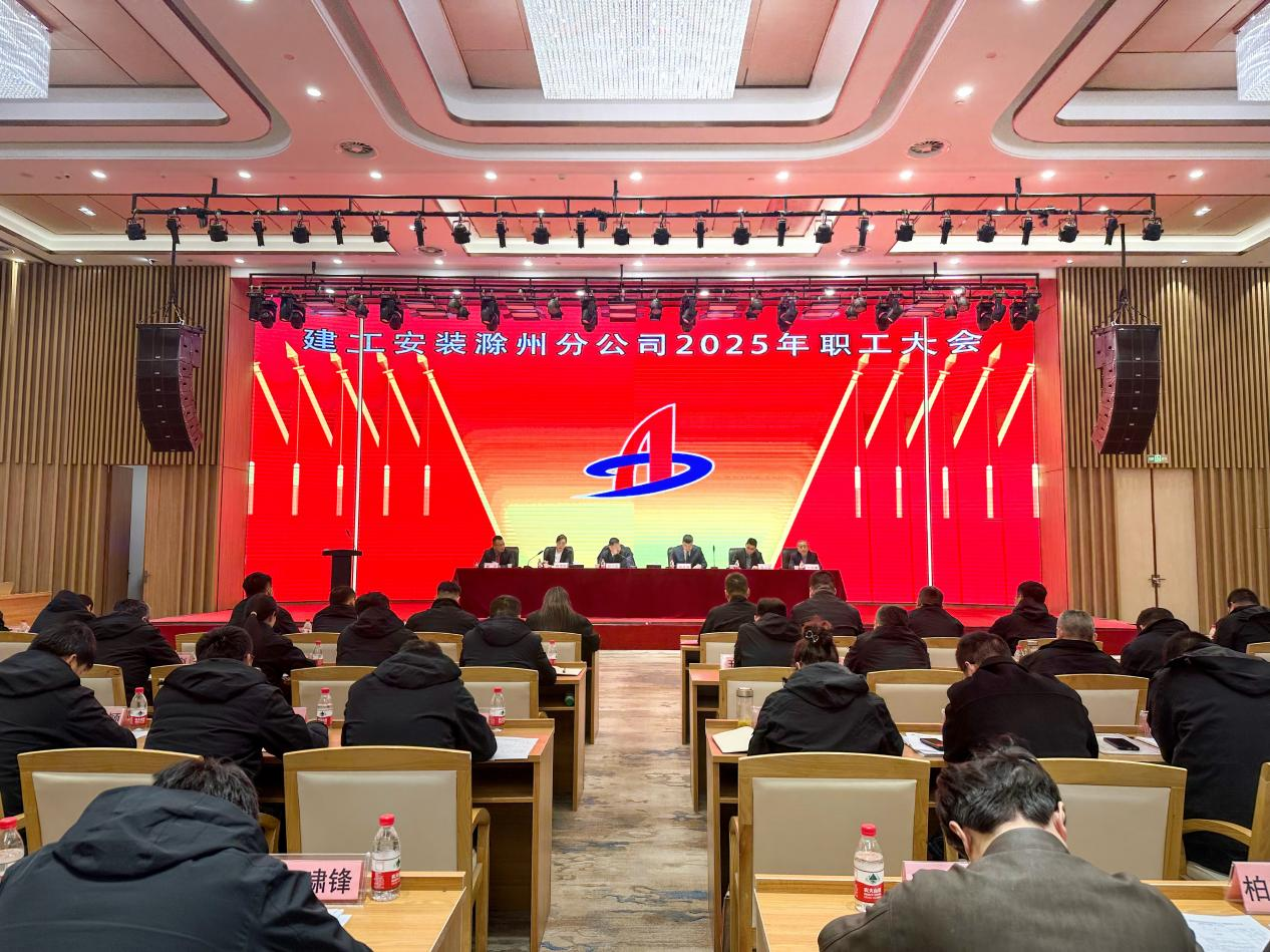 3月20日下午,建工安裝滁州分公司2025年度職工大會在滁順利召開,分公司全體員工參加會議,公司黨委委員、副總經理徐華磊應邀出席會議并講話,會議由分公司黨支部副書記、副經理程茂麗主持。