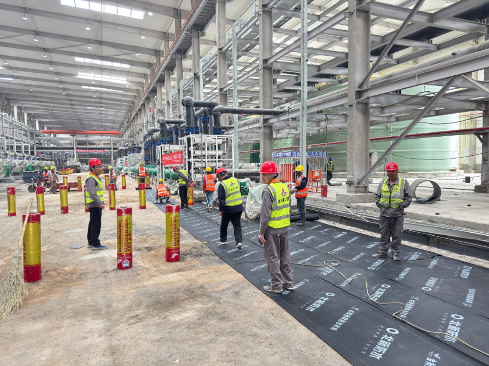 青海高原,氣候惡劣,環境艱苦,高寒缺氧,但這些困難并沒有阻擋項目部全體成員奮斗的步伐。施工現場,機器轟鳴聲此起彼伏,工人們頭戴安全帽,身系安全繩,操作著各種設備,熟練地進行著防水卷材敷設、吊頂板安裝、鋼筋綁扎、外墻抹灰、風管安裝等作業,每個環節都緊張有序,環環相扣。項目管理人員穿梭在各個施工點,緊盯現場安全與質量,及時協調解決施工中遇到的問題,他們全身心地投入到工作中,用專業的素養和嚴謹的態度為項目建設保駕護航。