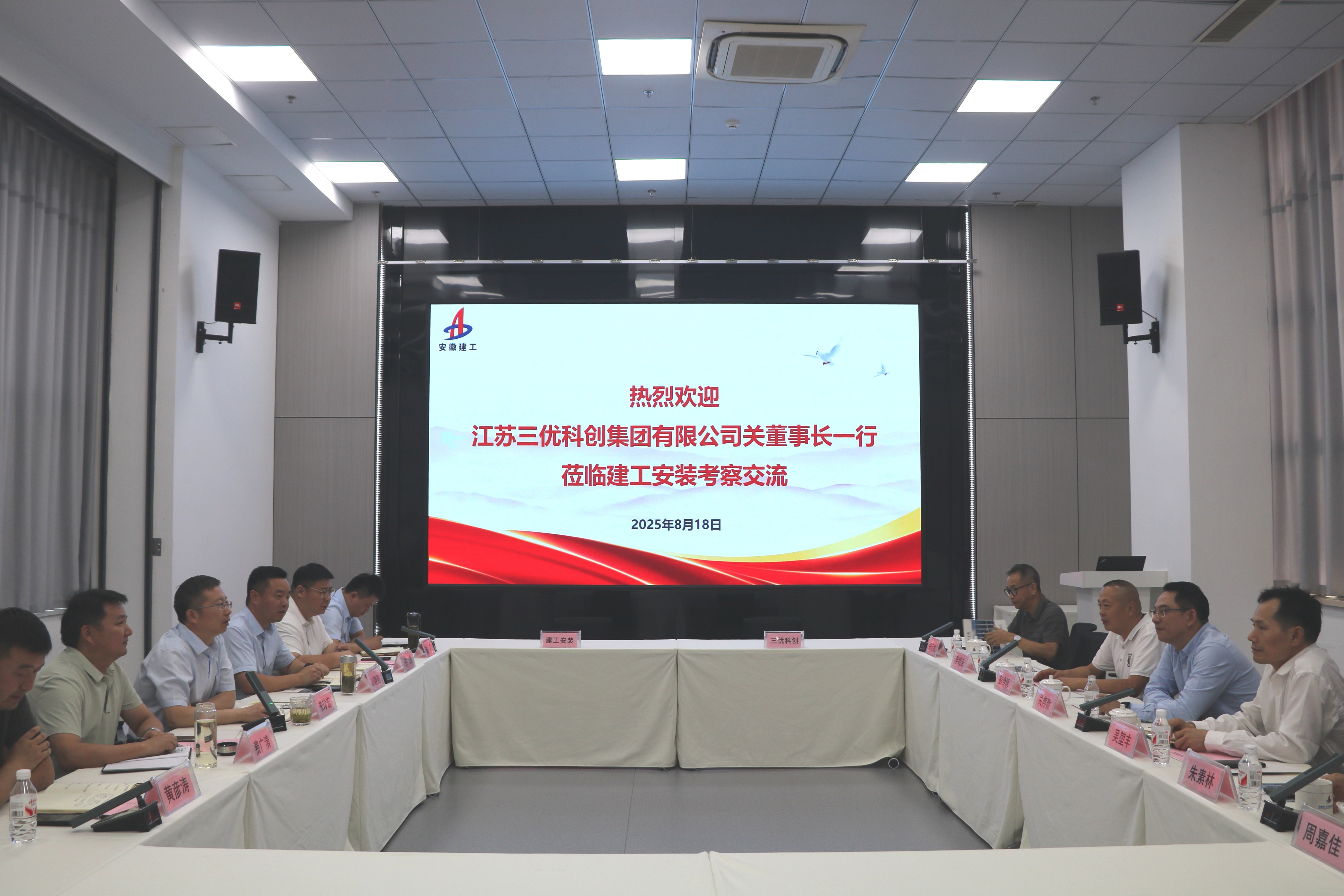 8月18日上午,建工安裝與江蘇三優科創集團舉行戰略合作簽約儀式。建工安裝黨委書記、董事長朱珍宏,三優控股董事長關邦勛出席共同見證簽約,并就深化雙方合作進行座談交流。